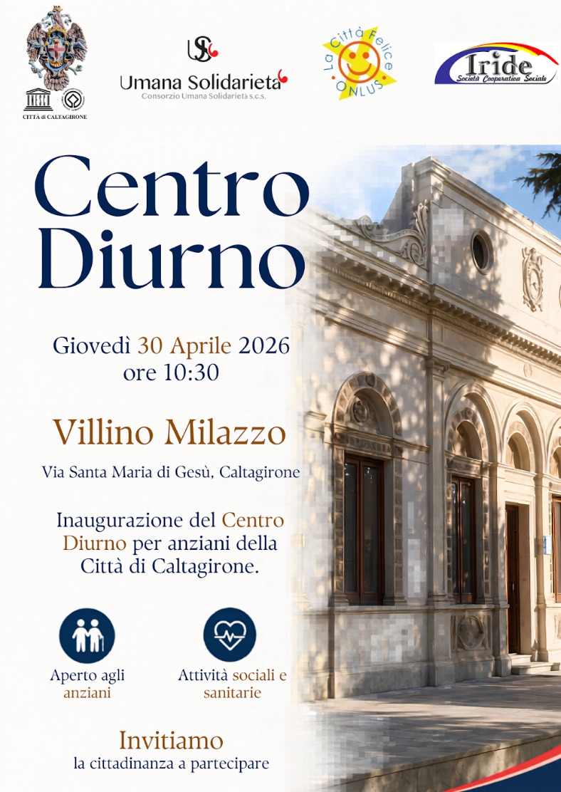Il Consorzio Umana Solidarietà s.c.s., e l’Associazione La Città Felice onlus, in collaborazione con il Comune di Caltagirone, inaugurano il Centro Diurno per anziani della Città di Caltagirone, un nuovo presidio territoriale dedicato al rafforzamento della rete dei servizi sociali e sanitari.